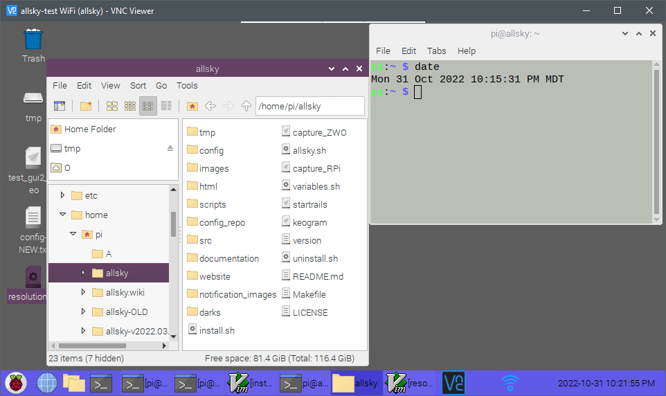 This page is for people will little or no Linux experience. It will give you enough information to install and use Allsky. If you are new to the Raspberry Pi see the Pi Basics page. The Allsky documentation assumes you know what's on these two pages. For example, you know how to log into the Pi, move around to various directories, view and edit files, and execute commands.